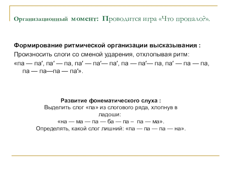 Определять, какой слог лишний: «па — па — па — на».