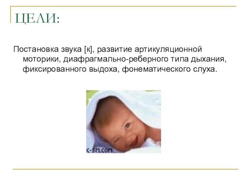 Постановка звука [к], развитие артикуляционной моторики, диафрагмально-реберного типа дыхания, фиксированного выдоха,