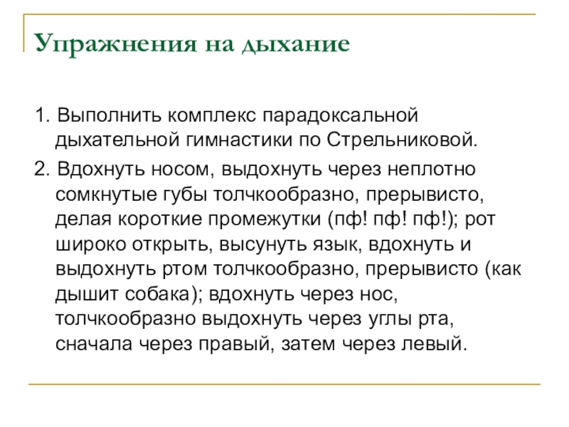 Слайд 14Упражнения на дыхание