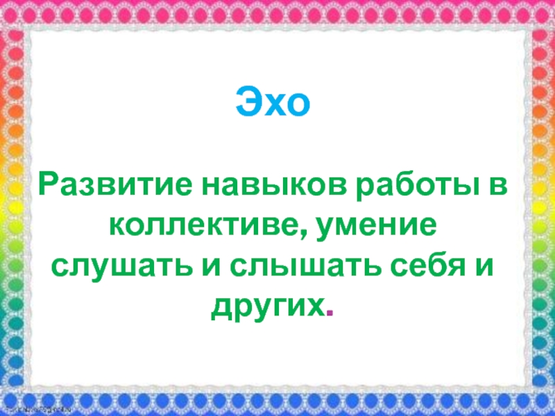 ЭхоРазвитие навыков работы в коллективе, умение слушать и слышать себя и других.
