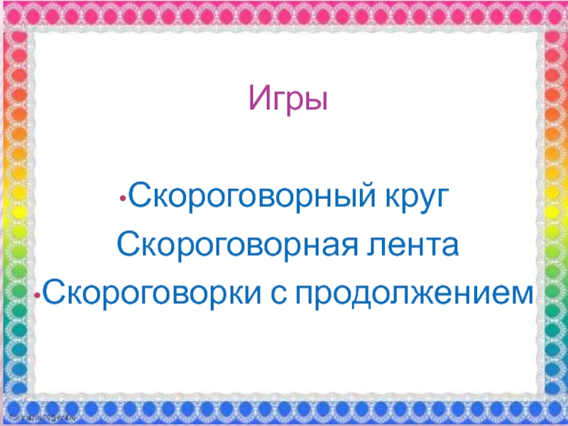 ИгрыСкороговорный кругСкороговорная лентаСкороговорки с продолжением