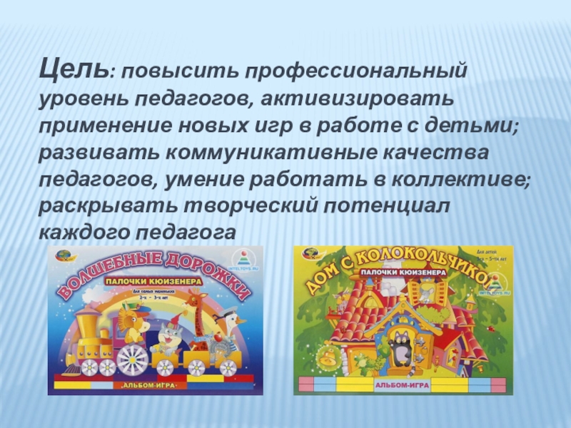 Цель: повысить профессиональный уровень педагогов, активизировать применение новых игр