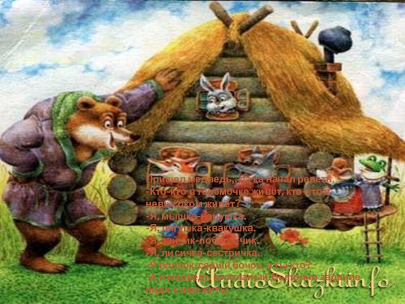 Вошла мышка в теремок и стала в нём жить.