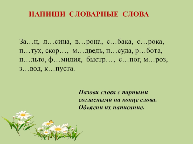Назови слова с парными согласными на конце слова. Объясни их написание.