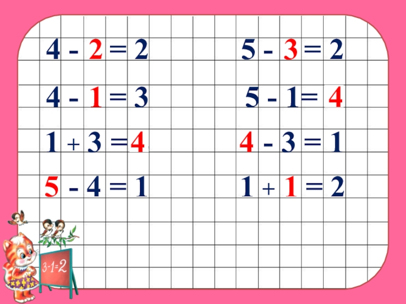 4 - = 224 - = 31 + 3 = 2 - 4 = 11455 - = 25 - 1= 2 - 3 = 11 + = 23441