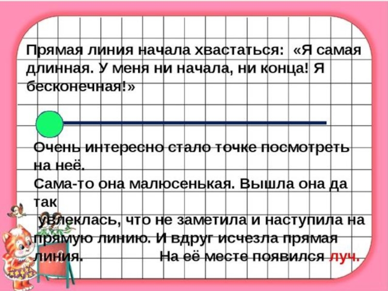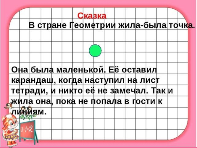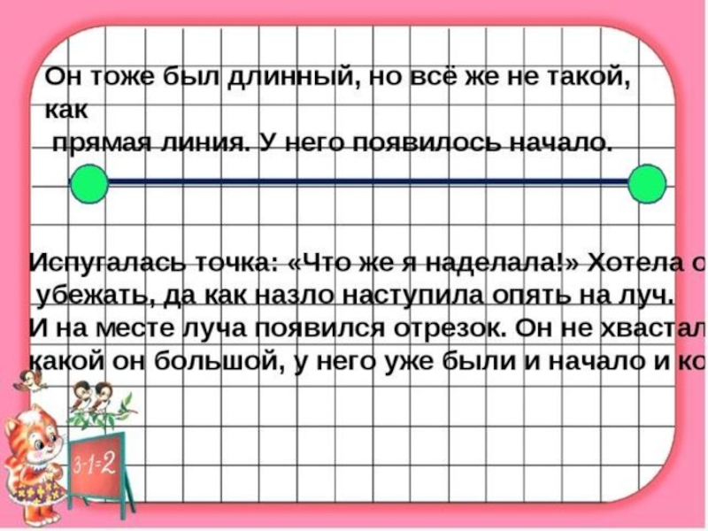 Презентация, доклад по математике 1 класс на тему Точка. Кривая. Прямая линия. Отрезок.