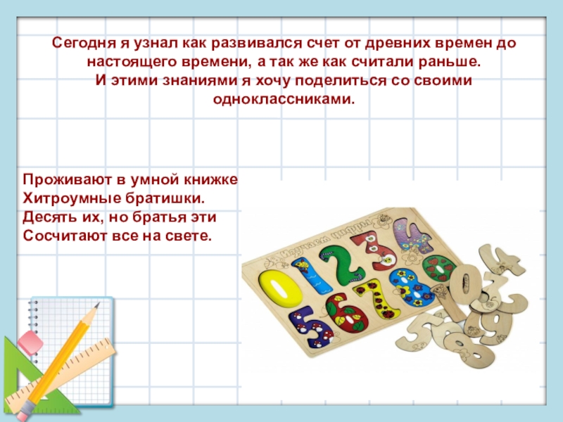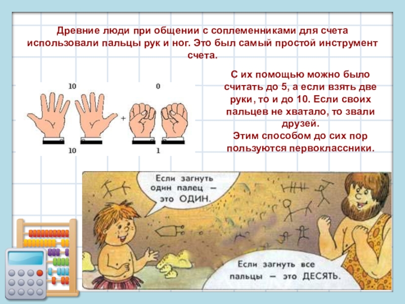 С их помощью можно было считать до 5, а если взять две руки, то и до 10. Если своих пальцев не хватало, то звали друзей.
