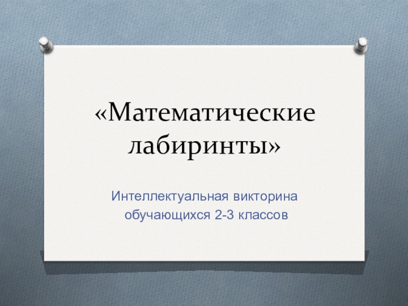 Презентация, доклад по математике 2-3кл к внешкольному мероприятию Математические лабиринты