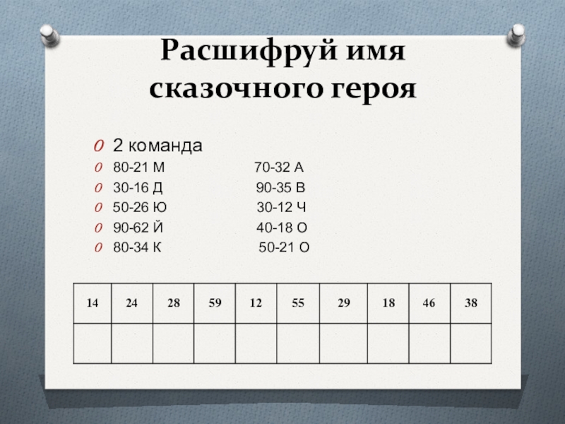 Расшифруй имя сказочного героя 2 команда80-21 М