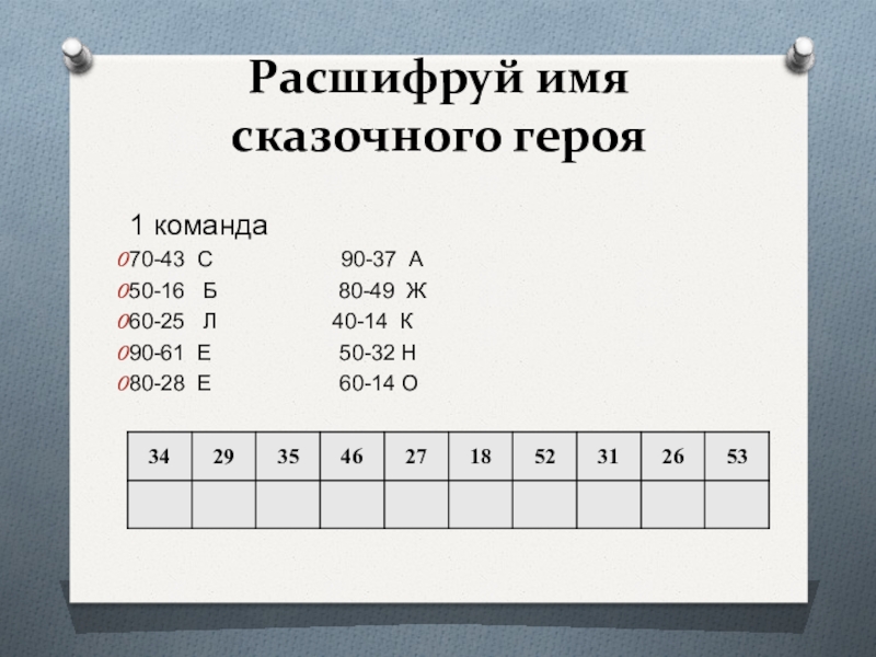 Расшифруй имя сказочного героя 1 команда70-43 С