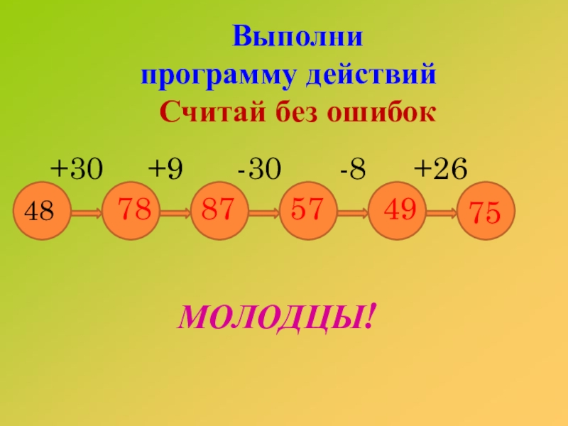 Выполни программу действий  Считай без ошибок7887574975МОЛОДЦЫ!