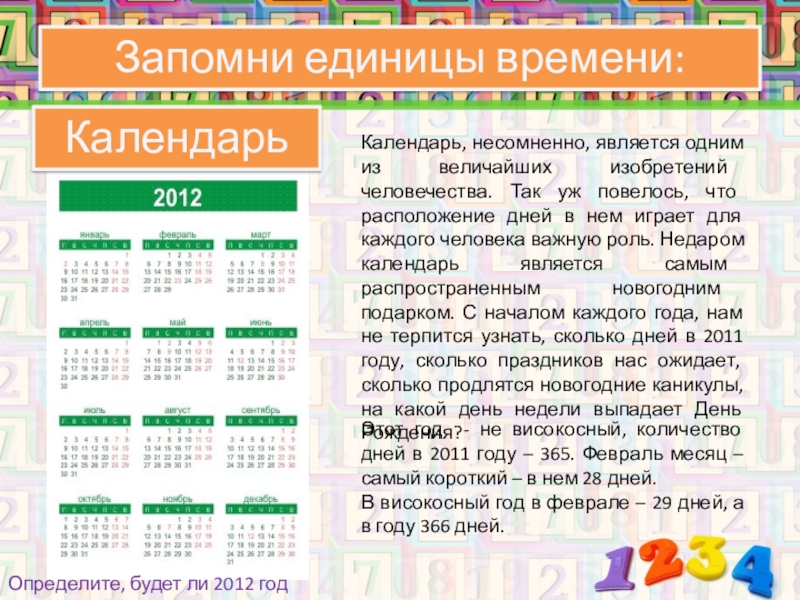 Этот год - не високосный, количество дней в 2011 году – 365. Февраль месяц – самый короткий – в нем 28 дней.
