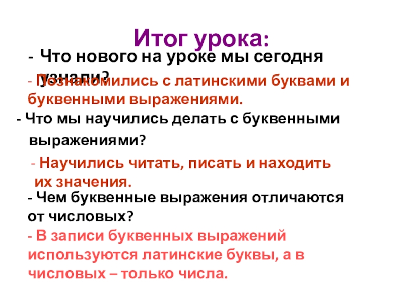 - Чем буквенные выражения отличаются от числовых?
