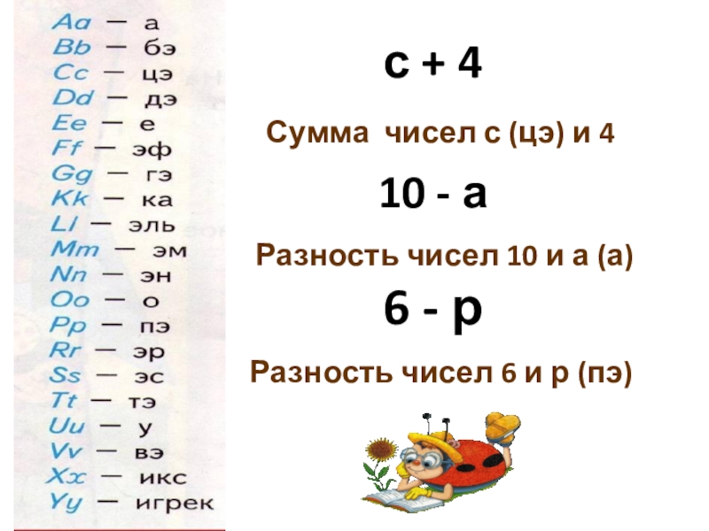 - В записи буквенных выражений используются латинские буквы, а в числовых – только числа.