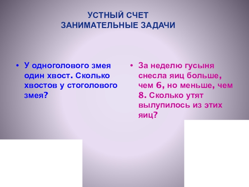 УСТНЫЙ СЧЕТ