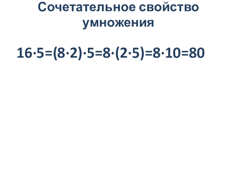 Сочетательное свойство умножения  16·5=(8·2)·5=8·(2·5)=8·10=80
