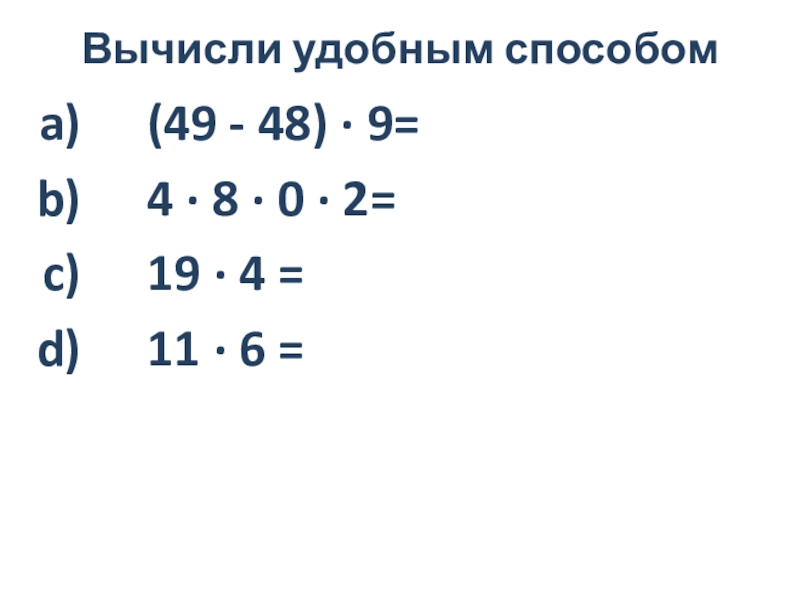 Вычисли удобным способом  (49 - 48) · 9= 4 · 8 · 0 · 2= 19