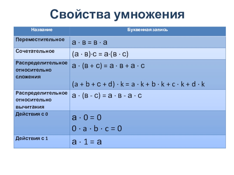 Слайд 1СВОЙСТВА УМНОЖЕНИЯ