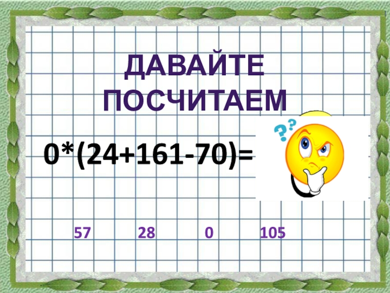 0*(24+161-70)=ДАВАЙТЕ  ПОСЧИТАЕМ28057105