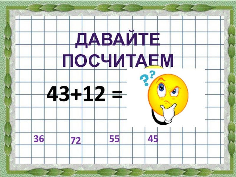 Слайд 543+12 =