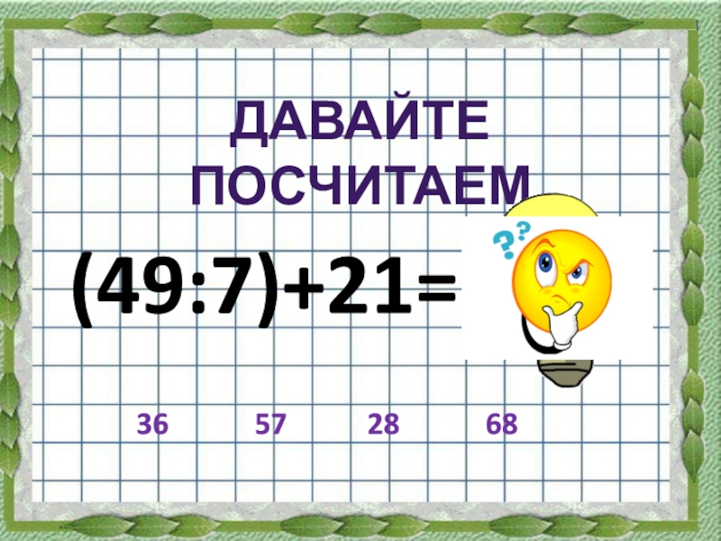 (49:7)+21=ДАВАЙТЕ  ПОСЧИТАЕМ36285768