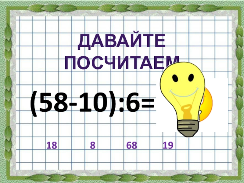 (58-10):6=ДАВАЙТЕ  ПОСЧИТАЕМ1886819