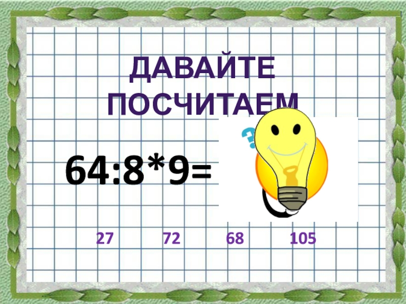 64:8*9=ДАВАЙТЕ  ПОСЧИТАЕМ722768105