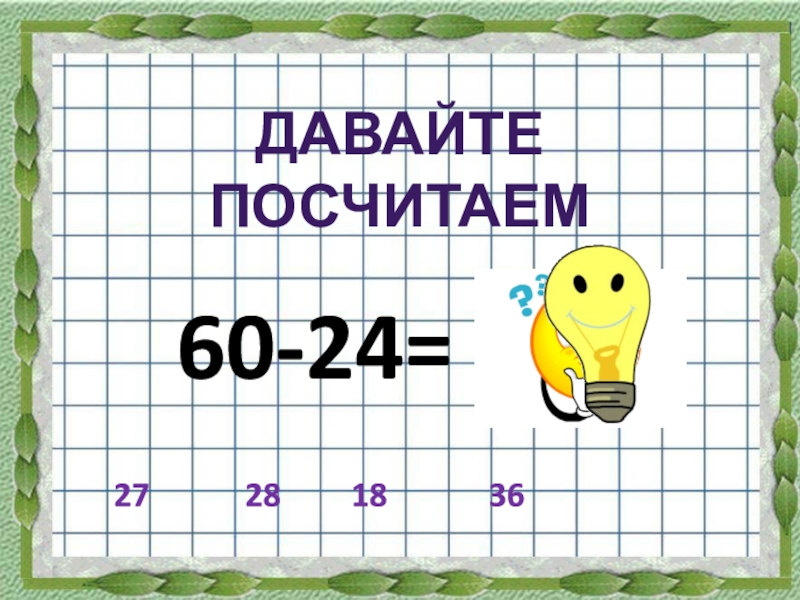 60-24=ДАВАЙТЕ ПОСЧИТАЕМ36182728