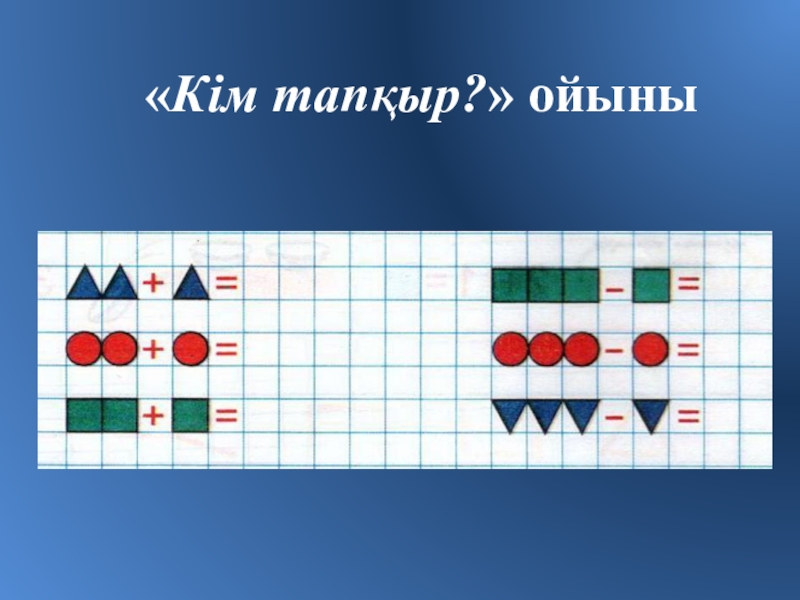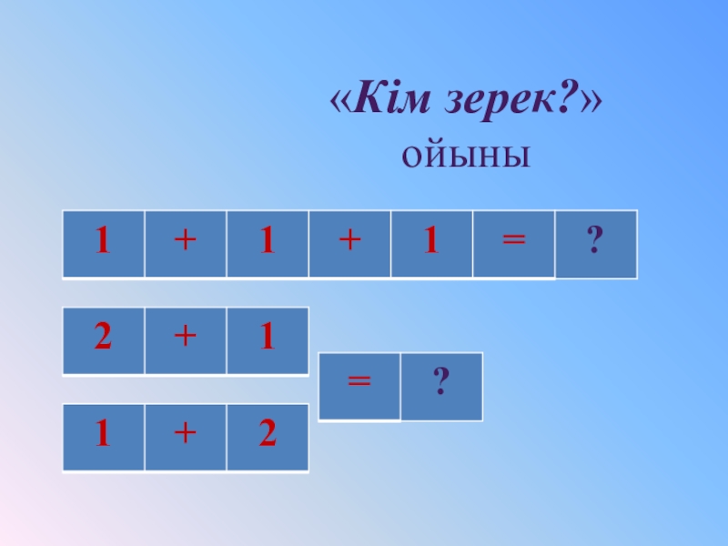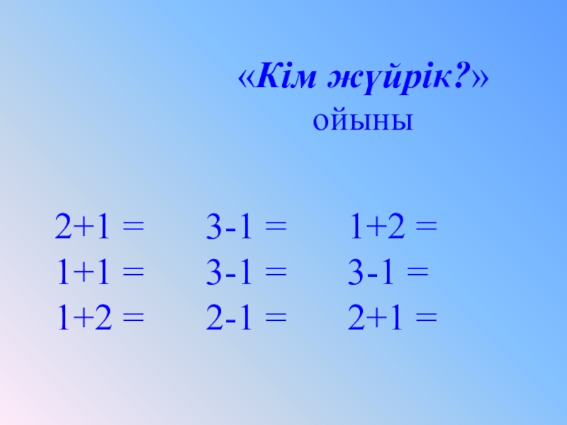 «Кім жүйрік?» ойыны2+1 = 	 	 3-1 =		 1+2 =1+1 =		 3-1 =		 3-1 =1+2 =		 2-1