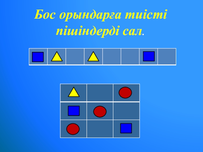 Бос орындарға тиісті пішіндерді сал.