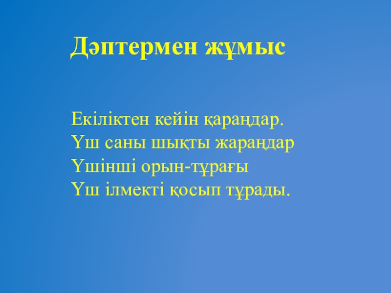 Слайд 7 Дәптермен жұмыс