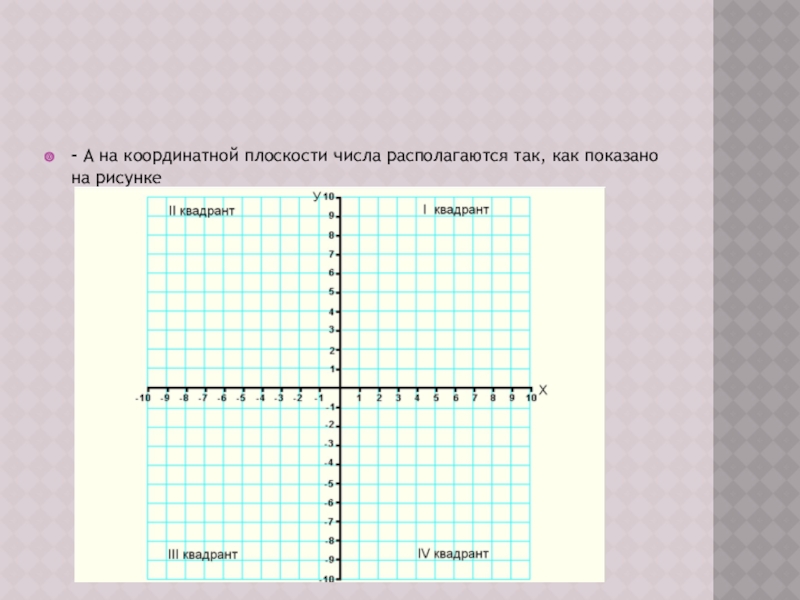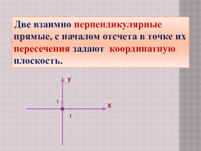 Две взаимно перпендикулярные прямые, с началом отсчета в точке их пересечения задают координатную плоскость.