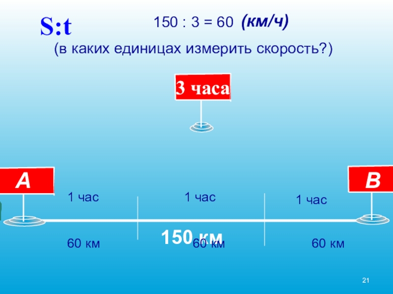 Чтобы узнать скорость движения, нужно расстояние разделить на время.