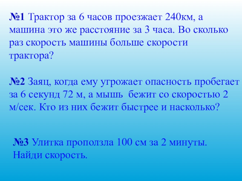 №3 Улитка проползла 100 см за 2 минуты. Найди скорость.