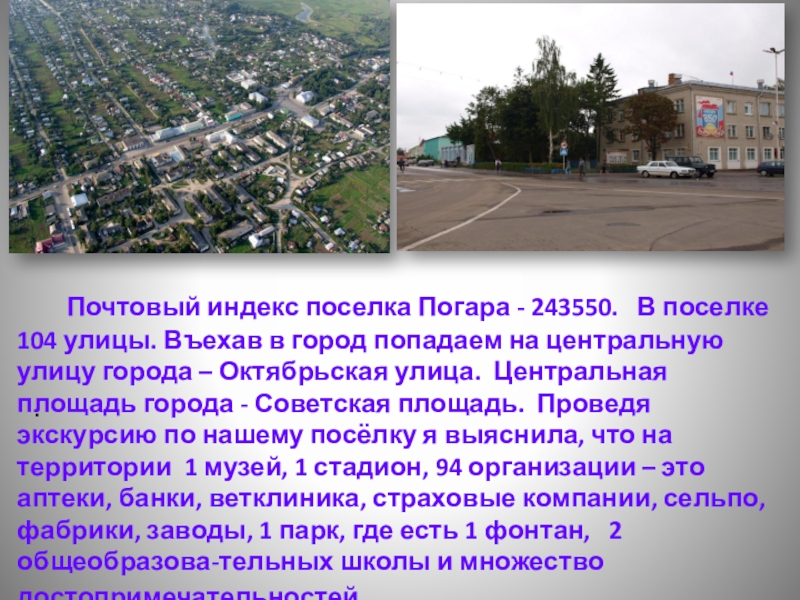 Пога́р — посёлок городского типа, административный центр Погарского района Брянской области России. Общая площадь земель в границах района составляет 1196,4 кв.км.