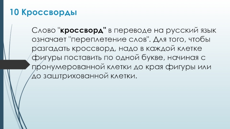 Слово "кроссворд" в переводе на русский язык означает "переплетение слов". Для