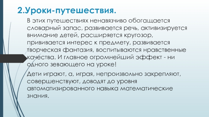В этих путешествиях ненавязчиво обогащается словарный запас, развивается речь, активизируется внимание