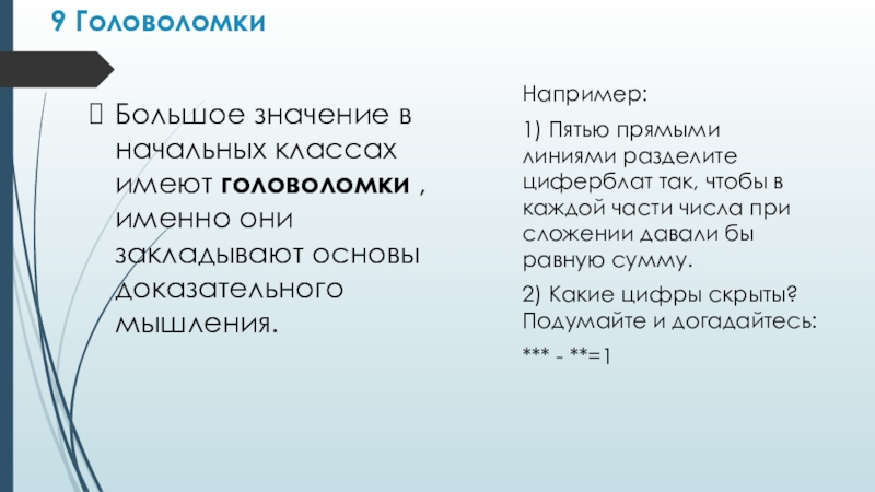 Большое значение в начальных классах имеют головоломки , именно они закладывают основы