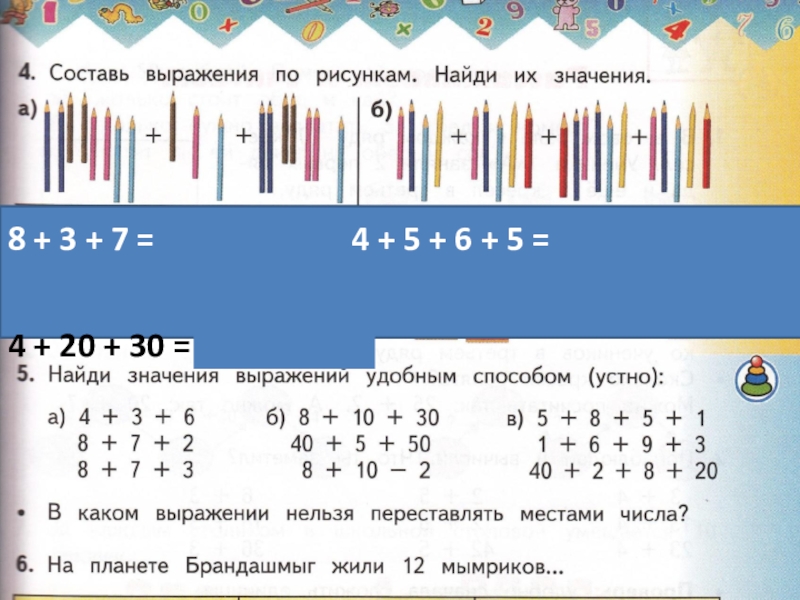 Слайд 38 + 3 + 7 = 8 + 10 = 18