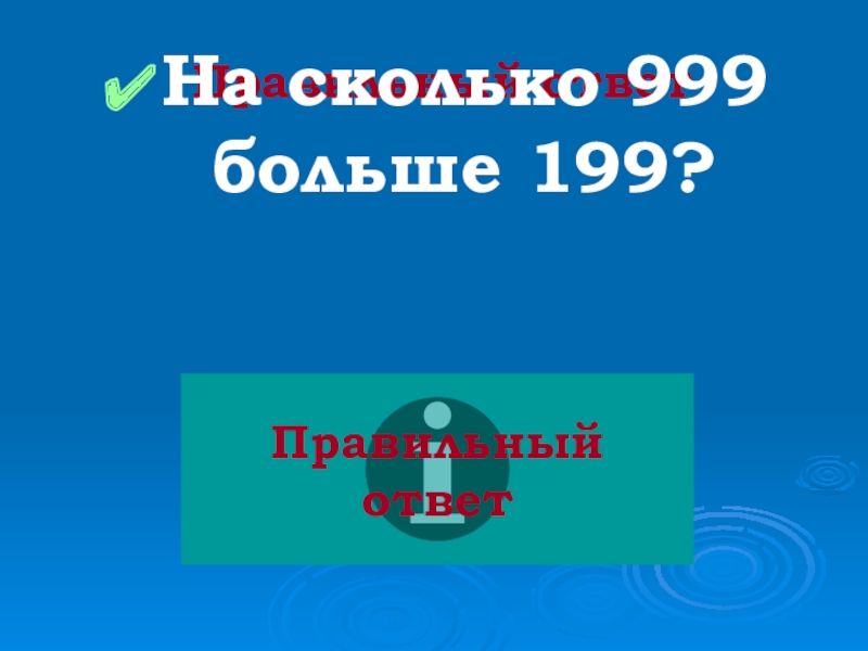 Правильный ответНа сколько 999 больше 199?Правильный ответ
