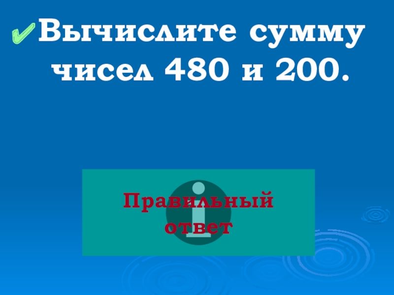 Слайд 2Вычислите сумму чисел 480 и 200.