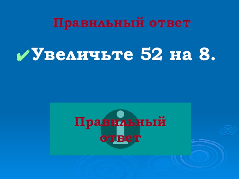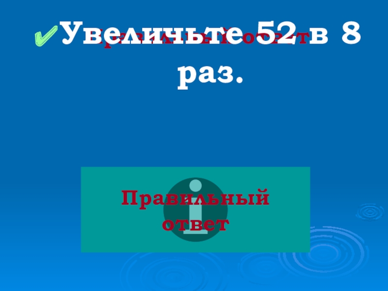 Правильный ответУвеличьте 52 в 8 раз.Правильный ответ