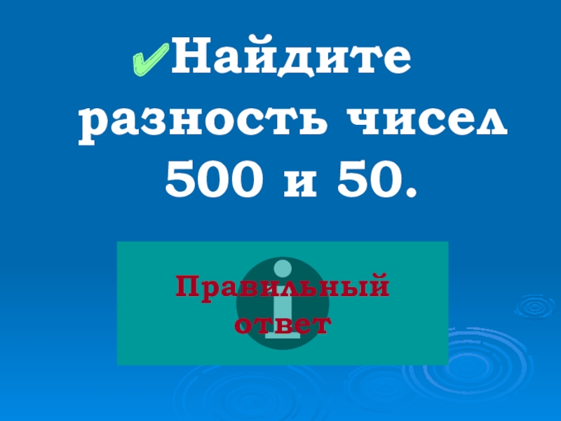 Слайд 4Найдите разность чисел 500 и 50.