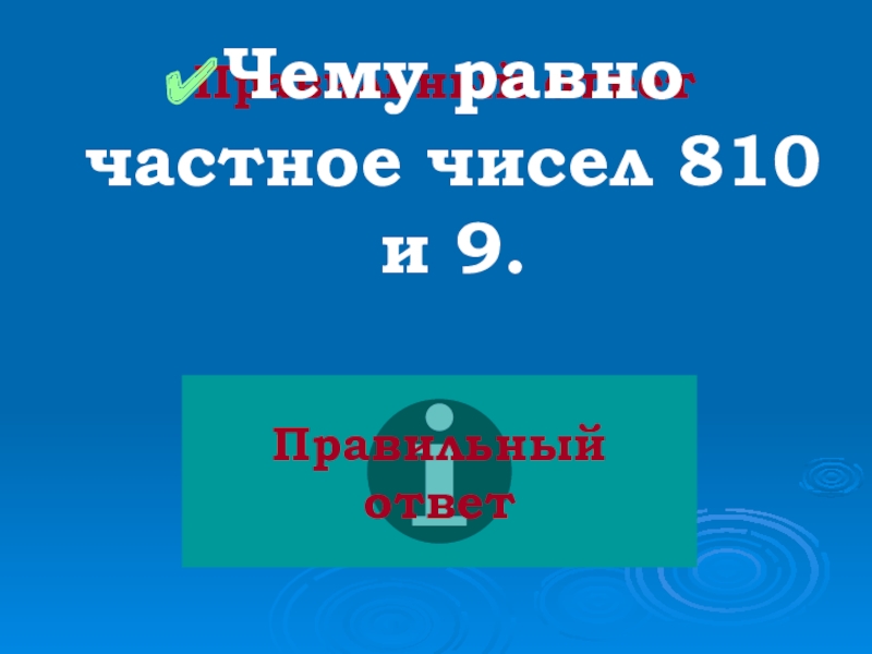 Правильный ответЧему равно частное чисел 810 и 9.Правильный ответ