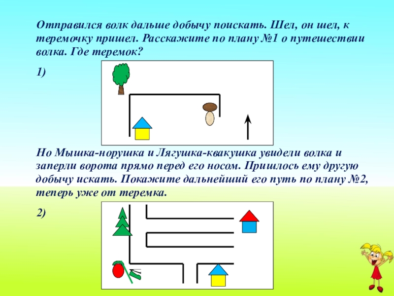А волк сначала бросился догонять козленка и только потом кинулся к домику. Проверьте правильно ли записан путь волка? Догнал ли волк козленка?