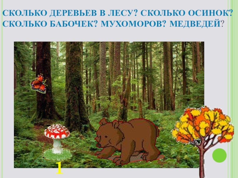 СКОЛЬКО ДЕРЕВЬЕВ В ЛЕСУ? СКОЛЬКО ОСИНОК? СКОЛЬКО БАБОЧЕК? МУХОМОРОВ? МЕДВЕДЕЙ?1