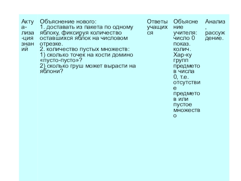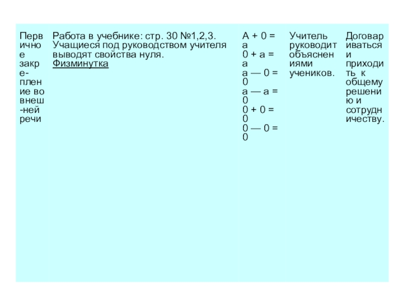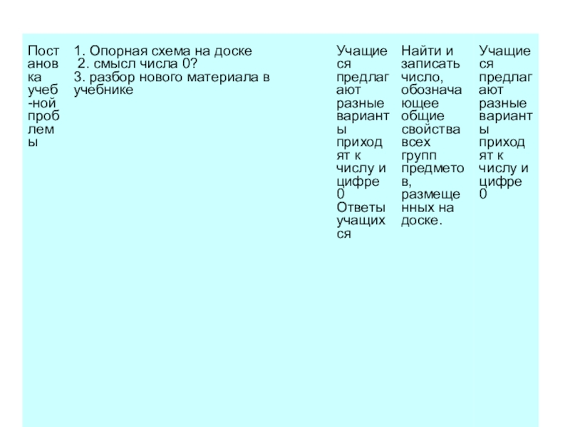 Сформировать представление о числе 0 и его свойствах; договариваться и