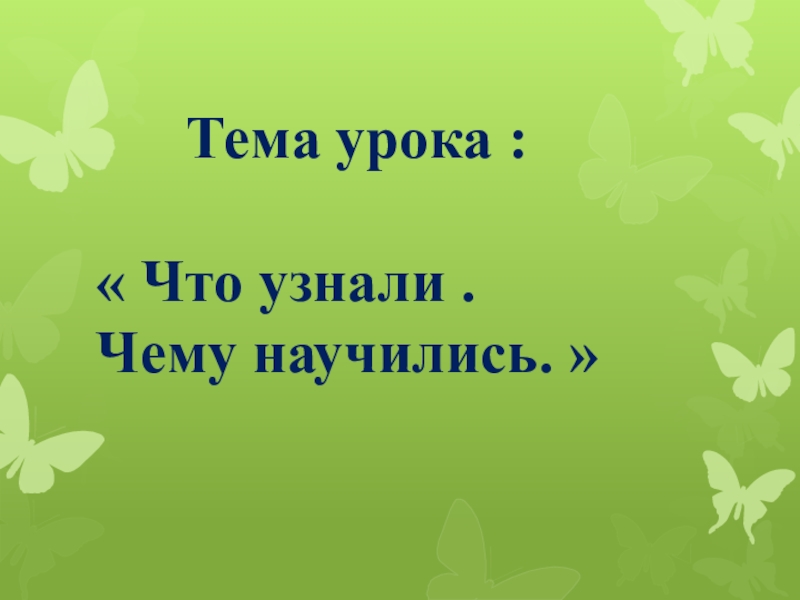 Слайд 2 Тема урока : « Что узнали . Чему научились. »