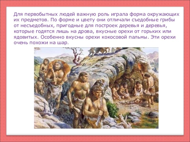 Слайд 5Для первобытных людей важную роль играла форма окружающих их предметов. По