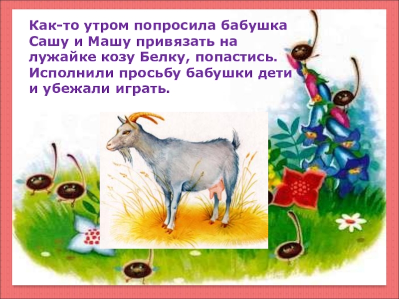 Как-то утром попросила бабушка Сашу и Машу привязать на лужайке козу